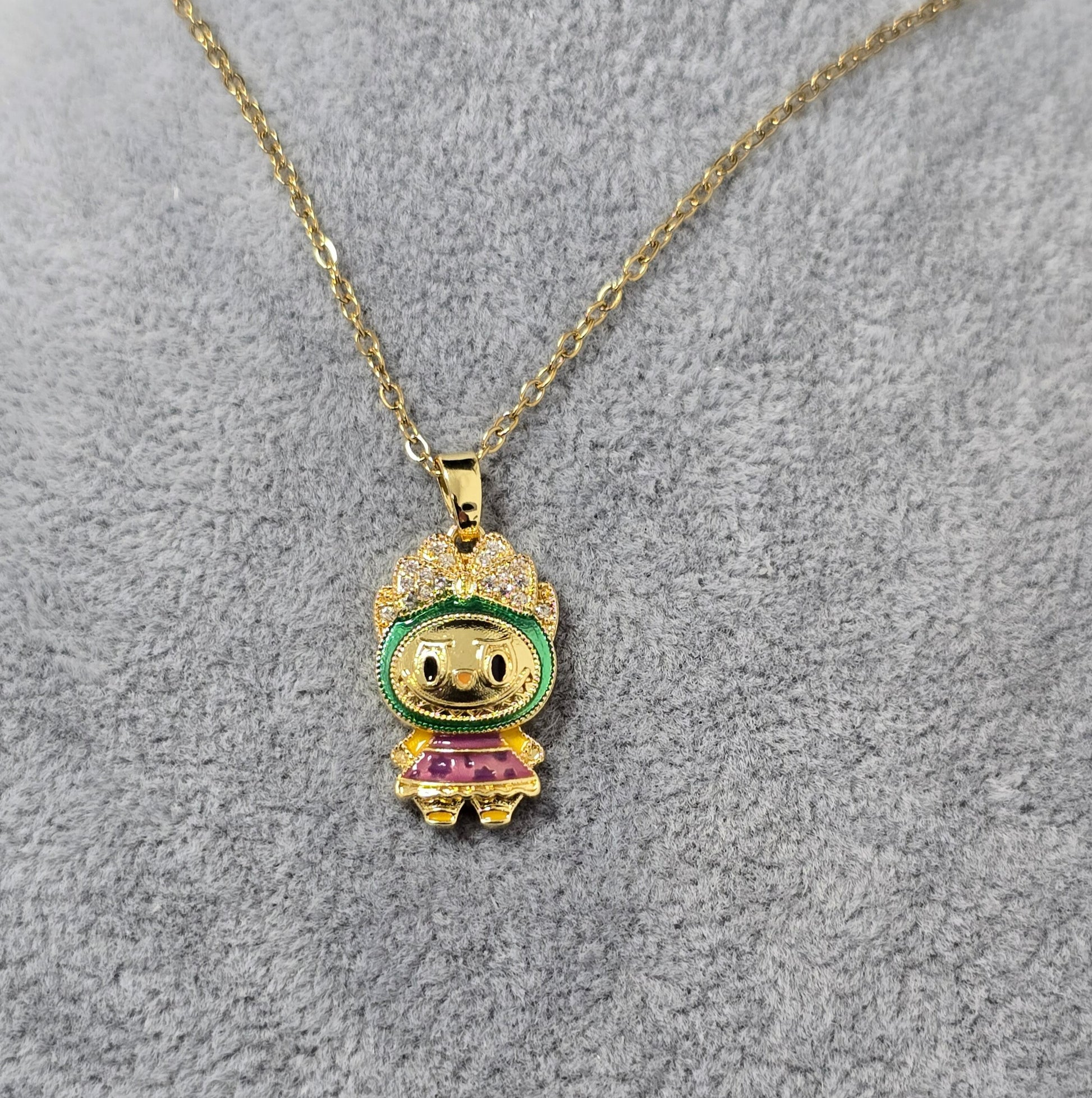 Die Labubu Halskette besticht durch ihr einzigartiges Design. Mit ihrer vergoldeten Kette und dem mit funkelnden Zirkonia verzierten Anhänger verleiht sie jedem Outfit eine elegante Note. Perfekt für den Alltag oder besondere Anlässe.